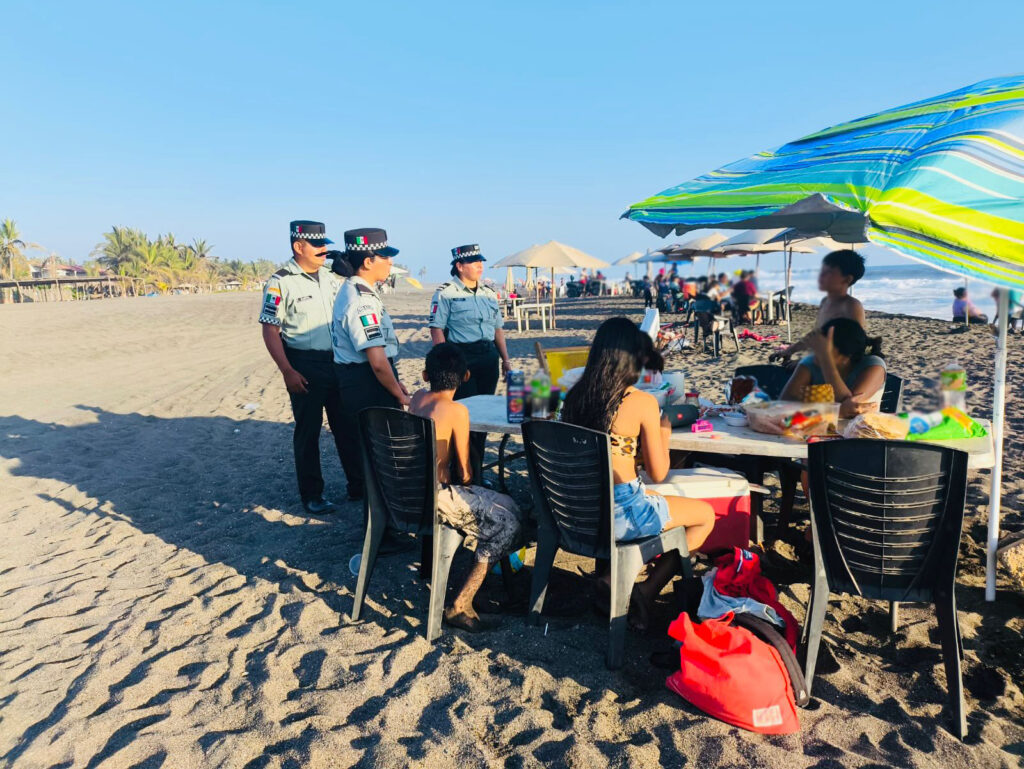 Personal de esta fuerza de seguridad pública recorre las principales playas de los municipios de Armería y Tecomán, Colima, con el objeto de brindar apoyo a los turistas nacionales y extranjeros.