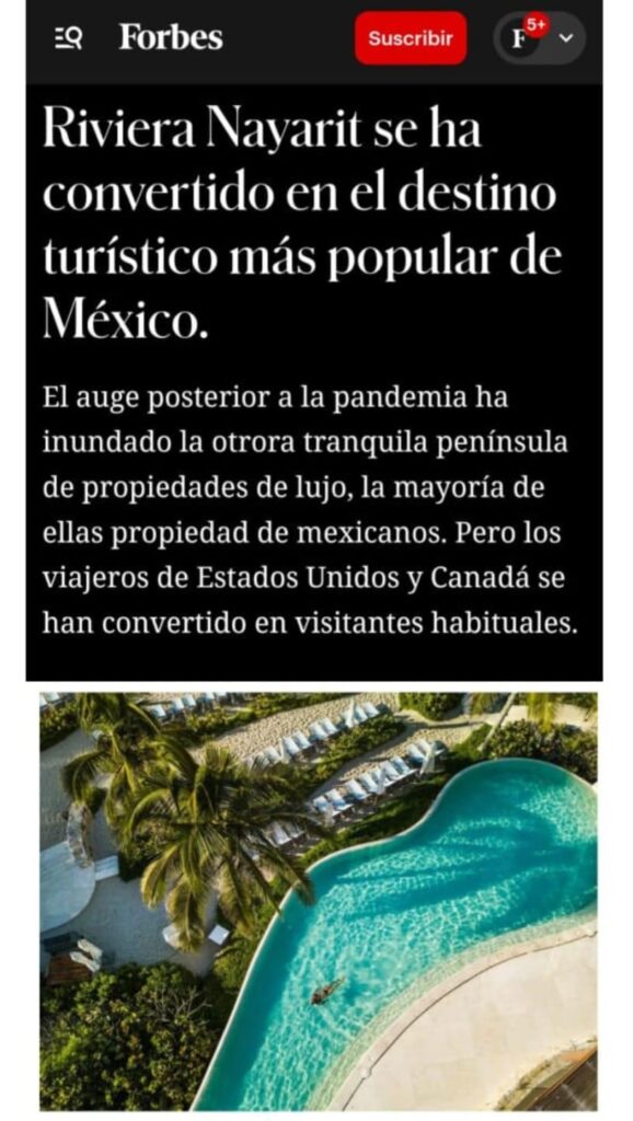 Navarro Quintero, invitó a consultar el siguiente artículo completo https://www.forbes.com/sites/winstonross/2026/03/31/rivieria-nayarit-has-become-mexicos-hottest-tourist-destination/ al confirmar que Nayarit avanza por el camino correcto promoviendo un turismo sustentable que fortalece la identidad y amplía las oportunidades para las familias nayaritas.