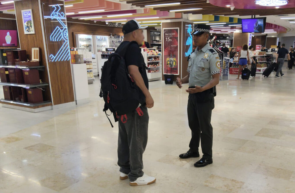 El personal de esta fuerza de seguridad pública recorre pasillos y salas de espera de la terminal aérea, donde tiene contacto con los pasajeros de vuelos nacionales e internacionales, brindándoles información acerca de la restricción de objetos al abordar el avión.