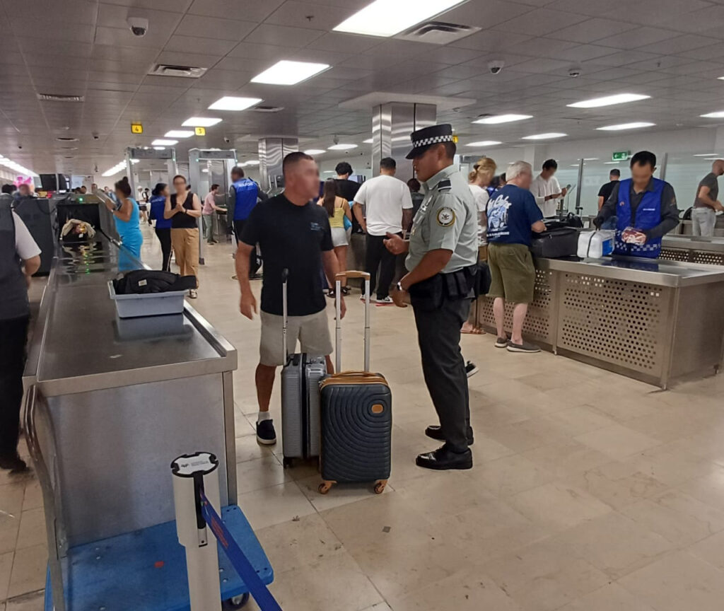 Los efectivos mantienen presencia en las salas de última espera y zonas de abordaje, además de efectuar controles de seguridad en los accesos del aeropuerto.
